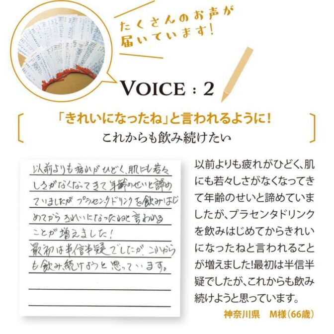 生プラセンタ+生ヒアルロン酸+生コラーゲン配合。