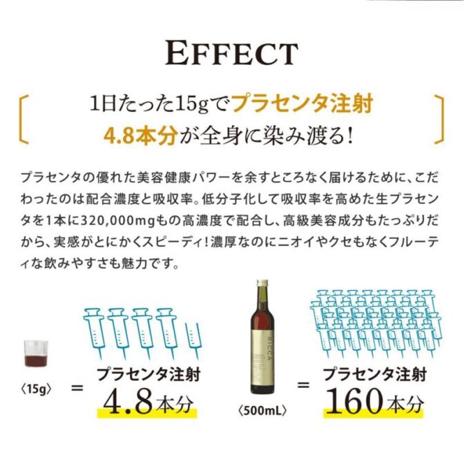 生プラセンタの含有量が1本あたり320000mgの高濃度!